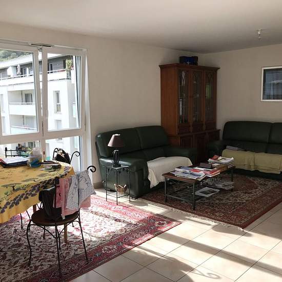 Bersot Immobilier Besançon vous propose à la location cet appartement au 2° étage avec ascenseur dans un immeuble récent et sécurisée. Il comprend une grande entrée avec placard, une cuisine (avec cellier) ouverte et équipée, un salon séjour avec accès à une grande terrasse, deux chambres dont une avec placard et une salle de bains avec arrivée d'eau pour machine à laver. Il est accompagné de deux places de parking. Chauffage gaz individuel (entretien de la chaudière inclus dans les charges). Libre de suite.