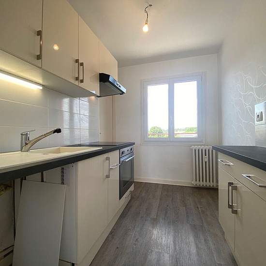 REF : 06106 T3, QUARTIER PALENTE, 39 C rue du Muguet, 4è étage avec ascenseur, très lumineux, proche toutes commodités, 56 m², cuisine équipée neuve, spacieux séjour, 2 chambres, chauffage collectif inclus, double vitrage PVC neuf, Cave, parking collectif, LIBRE