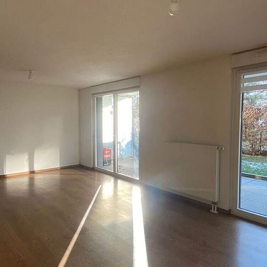 Appartement T3 À Louer. ** Nous ne traitons aucune demande par téléphone, merci de nous contacter directement via le formulaire de contact du site ** A LOUER - Rue Poincaré - BISCHHEIM - Appartement T3 de 77.45m2 situé en rez-de-jardin dans une résidence sécurisée L'appartement se compose : d'une entrée avec placard intégré, d'une cuisine équipée (plaques, four, hotte) ouverte sur un spacieux séjour, d'une salle d'eau, d'un WC séparé et de deux chambres dont une avec placard intégré. Une terrase, un jardin, une cave et une place de parking...