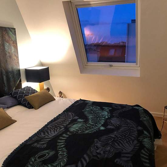 TRES BEL APPARTEMENT T3 MEUBLE A 2 MN DU TRIANGLE D'OR AVEC GARAGE ET CELLIER Au dernier étage d'un immeuble sécurisé avec ascenseur, très bel appartement entièrement meublé composé d'une entrée, d'un grand séjour salle à manger donnant sur un balcon de 9 m2 qui a pour vue les toits de Bordeaux, Une cuisine très chic entièrement équipee et meublée avec frigo américain, four, lave-vaisselle dispose de tout le nécessaire afin de cuisiner mais aussi de recevoir. Un couloir avec de nombreux placards dessert deux chambres avec placards., un wc et...