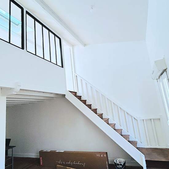 Arrow Immobilier vous propose à la location un appartement de type 3 en duplex, situé au dernier étage d'un petit immeuble, donnant sur cour intérieure, offrant calme et intimité. Entièrement rénové dans un esprit loft, cet appartement se compose d'une vaste pièce de vie lumineuse, d'une salle d'eau avec WC. À l'étage, vous découvrirez un bel espace mezzanine / bureau, ainsi qu'une chambre avec placard, idéal pour un mode de vie moderne et fonctionnel. ? Appartement T3 en duplex ? Dernier étage ? Esprit loft rénové ? Cour intérieure, environ...
