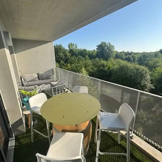 Appartement T3 à louer meublé secteur Bègles Vue parc de Mussonville 68m2 1 salon cuisine de 38m2 2 chambres de 10 et 11m2 Une loggia de 11m2 Une place de parking 1250€/mois charges comprises Résidence calme Mp pour plus d’infos