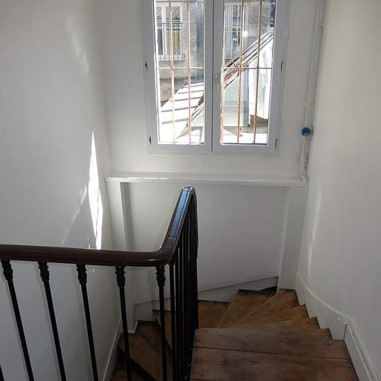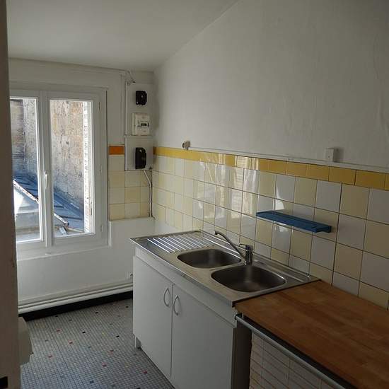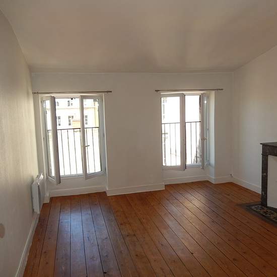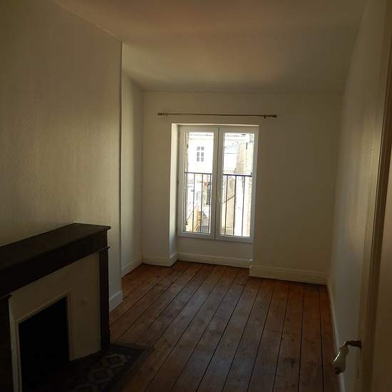 Appartement T3 65 m2 au 3ème et 4ème étage arrière au calme dans un immeuble pierre, composé :au 3ème étage une entrée avec cage d'escalier menant au 4ème,un grand couloir avec grand placard desservant une cuisine séparée avec placards, une grande chambre et une chambre plus petite, une salle d'eau et un wc indépendant.Parquet ancien.Chauffage et eau chaude électrique.DISPONIBLE A PARTIR DU 5 FEVRIER