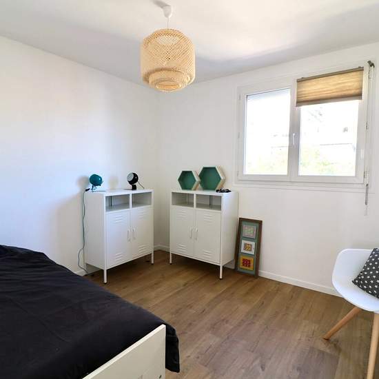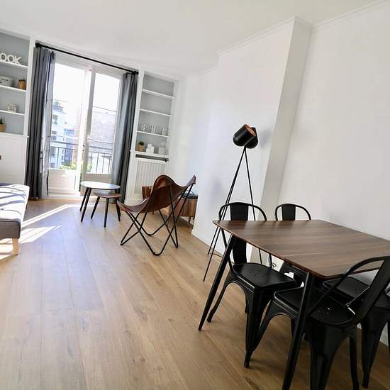 Loué : Au 5e étage avec ascenseur d'un bel immeuble ancien, superbe appartement de 53 m2 totalement refait à neuf, meublé et équipé avec soin. Il bénéficie d'un plan parfaitement optimisé avec une entrée, un séjour, une cuisine avec tout l'électroménager intégré, un espace nuit avec 1 dégagement + placard, une chambre avec 1 lit double + placard intégré, une autre chambre avec 1 lit simple modulable en double + rangements, une salle de douche avec lave linge et toilettes séparés. Fibre optique Orange, petit électroménager, vaisselles, couver...
