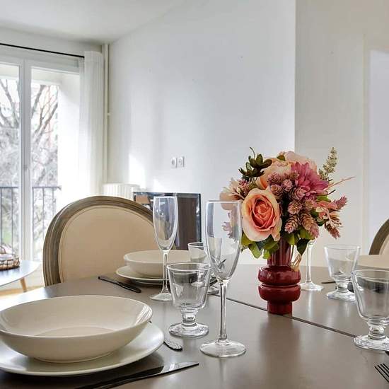 Le logement Ce logement est disponible pour un bail mobilité UNIQUEMENT. Le bail mobilité est un type de bail de location meublée de courte durée. Il vise à faciliter la mobilité des locataires, et notamment ceux amenés à déménager pour des raisons professionnelles (mutation ou mission), les étudiants, les jeunes en formation, en alternance ou en stage. Il s'agit d'un appartement de 70m² situé au 1er étage sans ascenseur. Il se compose de: - Une cuisine équipée et fonctionnelle : frigidaire, plaques de cuisson, machine à café, grille-pain, b...