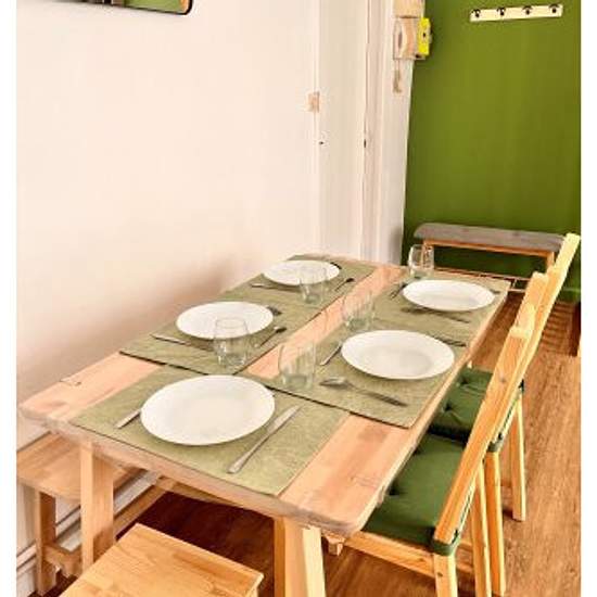 Espace de vie : Bienvenue dans notre salon accueillant et lumineux, idéal pour se détendre en famille ou entre amis. Notre confortable canapé convertible vous invite à la relaxation, tandis que notre télévision à écran plat et nos jeux de société promettent des soirées agréables. Les voyageurs d'affaires apprécieront également notre bureau dédié, offrant un espace propice à la concentration. Cuisine : Régalez vous dans notre cuisine toute équipée avec plaques de cuisson, four, micro onde, grille-pain et cafetière Senseo. Nous avons pensé à t...