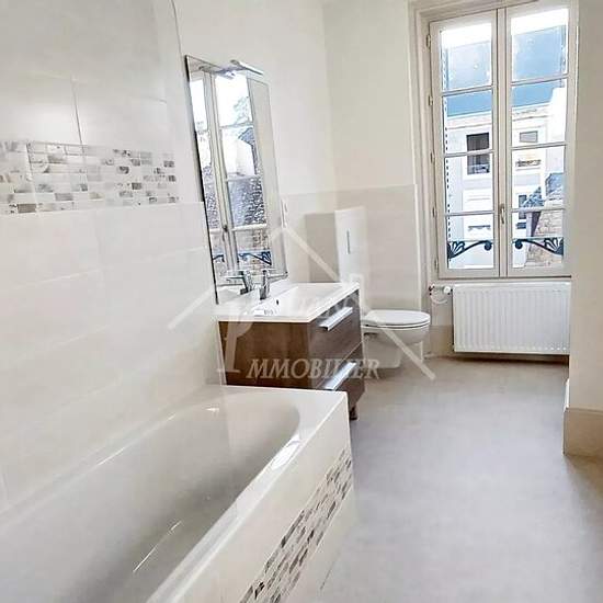 APPARTEMENT F3 très clair et spacieux, entièrement neuf, 2e étage (sans asenceur) d'un bel immeuble ancien au coeur du village thermal. Entrée couloir et dégagement desservant cuisine aménagée-équipée, salon-séjour avec porte-fenêtre, 1 grande chambre sur parquet de chêne, 2e chambre, salle de bains avec toilettes et grande fenêtre. Imeuble sécurisé ; monopropriété de 3 appartements avec bureaux en RDC. Les charges comprennent avance sur chauffage, TEOM et entretien chaudière et des communs. Tous commerces, supermarchés, école, collège et Th...