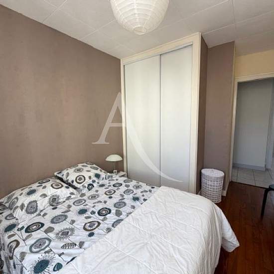 A louer Bourg en Bresse, dans petit immeuble résidentiel très calme avec espaces verts, appartement entièrement meublé de type 3 situé au 1er étage (sans ascenseur). Ce logement rénové et en parfait état comprend une entrée avec rangement, une cuisine toute équipée, un vaste séjour salon lumineux avec accès à un balcon, deux chambres avec placard, belle salle d'eau équipée avec grande douche, meuble vasque et machine à laver, WC séparés. Chauffage Individuel avec chaudière gaz récente. Vaste cave en sous-sol de l'immeuble. En option : Possib...