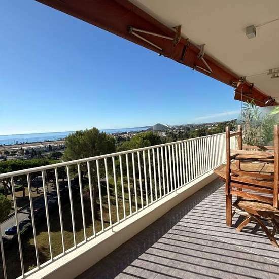 Cagnes Domaine du Loup, dans domaine sécurisée, piscine, tennis, club house 3 pièces meublé comprenant une entrée, un grand séjour donnant sur une terrasse de 15m² expo Sud avec vue mer panoramique, cuisine indépendante entièrement équipée donnant sur une terrasse de 10m², 2 chambres, salle de bains, parking couvert. Ce bien est disponible à compter du 19/08 Afficher le téléphone