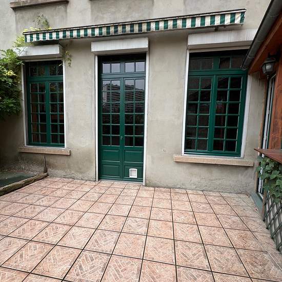 For rent: T3 bis in Caluire (69300) located at 10 montée du Belvédère on the border of Lyon 4th arrondissement. Beautiful 3-room apartment of 95.20 m² on the ground floor of a quiet, secure older building. The apartment is bright and has a terrace. It consists of a large living room of 55 m² with a mezzanine (possibility to partition the space under the mezzanine to make a bedroom or an office), a separate furnished and equipped kitchen, 2 bedrooms, a bathroom, a toilet, and 2 cellars. It also has a closed garage. Gas insert in the living ro...