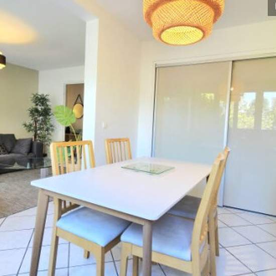 LOYER TOUTES CHARGES COMPRISES : eau, électricité, Internet, gaz, draps et linge de maison. Joli, lumineux et confortable appartement avec 2 chambres et places de parking (non attribuées) dans la résidence. Idéal pour les familles, les professionnels dans le milieu hospitalier ou les particuliers à la recherche d'un cadre calme et verdoyant avec un accès facile à Lyon centre-ville Situé dans un immeuble comportant un grand parc arboré avec une aire de jeu pour les enfants et des places de parking libres mais privées pour la résidence. Fenêtr...
