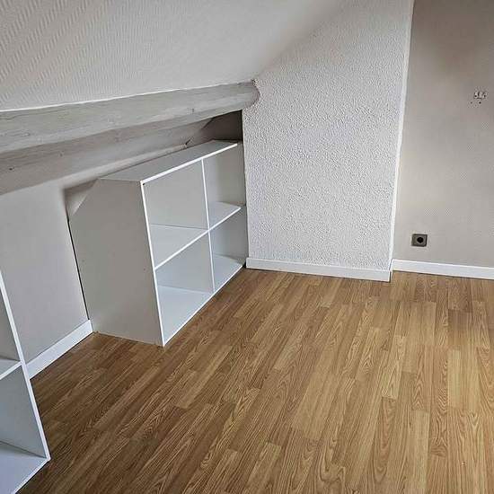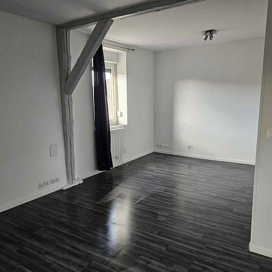 Hello — due to a cancellation I am re-listing for rent an F3-type duplex apartment near the hospital and shops: living room, kitchen and bathroom on the ground floor, and two nice bedrooms plus a small office area on the upper floor. The rent is €585 + €15 charges, i.e. €600 per month.