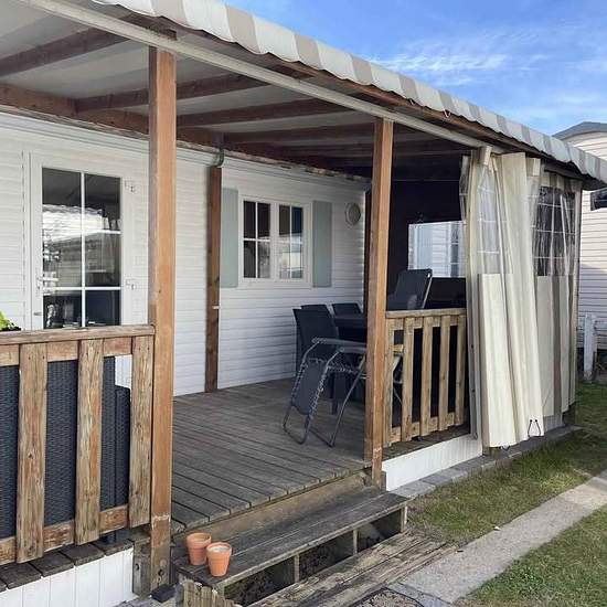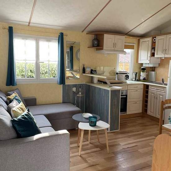 Mobil home 4-6 places tout confort 2 chambres 2 places+ canapé lit 2 places si besoin 1 salle de bain, douche Cuisine équipée, salon TV Terrasse équipée couverte Chalet dans la parcelle, avec vélo et jeux de plage à dispo Machine a laver séchante A 50m de la plage Sainte Cécile plage , dans camping Me contacter si intéressé