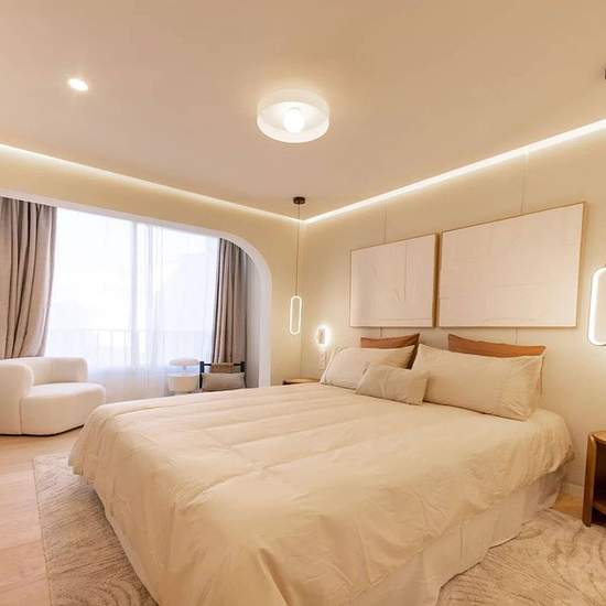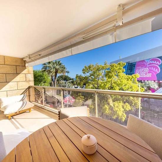 Location longue durée Idéalement situé face au Palais des Festivals, à deux pas de la rue d’Antibes et des plages, ce magnifique appartement de 55 m² a bénéficié d’une rénovation complète. Il offre un vaste séjour prolongé par une grande terrasse, une cuisine ouverte entièrement équipée, ainsi que deux élégantes chambres, chacune disposant de sa propre salle d’eau et d’un dressing. Disponible à la location saisonnière Location longue durée 12 mois L’estimation des dépenses énergétiques en 2021 se situe entre 524 € et 708 € par an. Les inform...