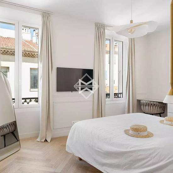 Idéalement situé face au Palais des Festivals, ce magnifique appartement d’environ 74 m² bénéficie d’un emplacement central exceptionnel. Entièrement rénové, il offre un cadre moderne et élégant, parfait pour profiter des événements du Palais et des attractions voisines. Il se compose comme suit : - Une entrée avec placards - Un salon / salle à manger ouvert sur une cuisine entièrement équipée - Chambre 1 : suite de Maîtres avec lit de 160cm, placards, salle de douches doubles vasques, WC - Chambre 2 : suite d'invités avec lit de 160cm, plac...