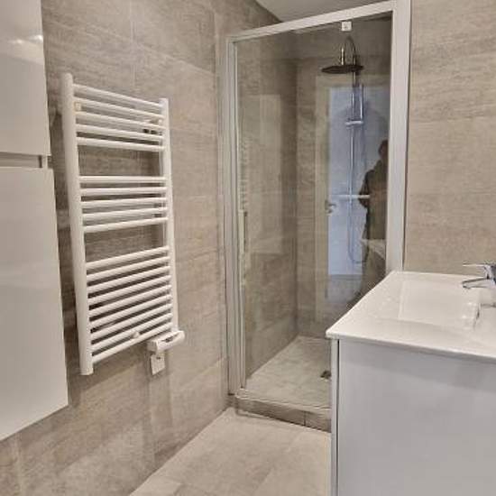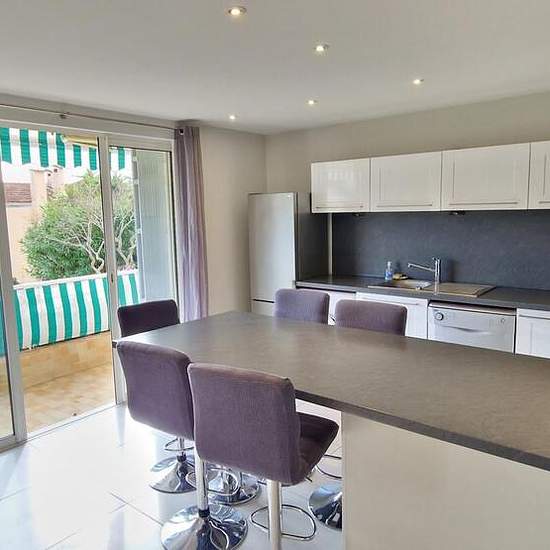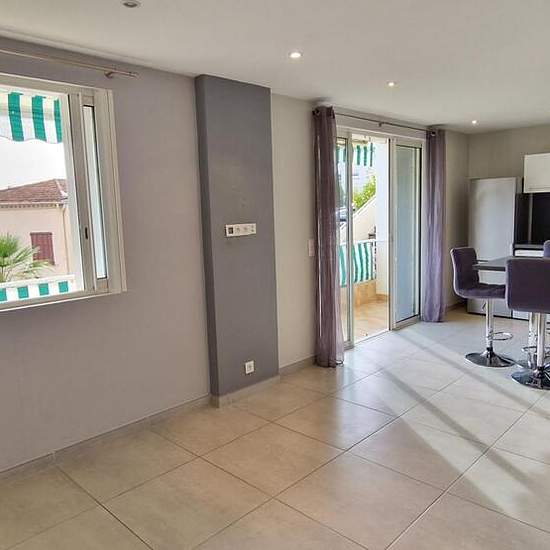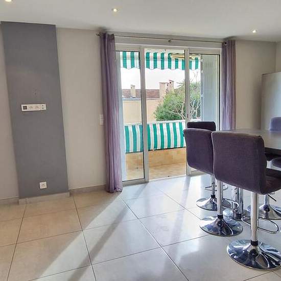 Appartement 3 pièces au rez de chaussée surélevé de 52.02 m² comprenant : une entrée, une cuisine ouverte sur séjour donnant sur un grand balcon, 2 chambres avec placard, salle d'eau, wc indépendant, une cave et un box en extérieur.