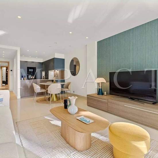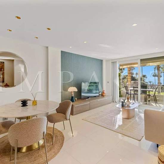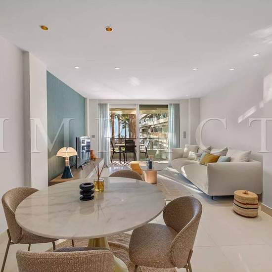 Appartement de 82 m² entièrement rénové avec des matériaux de qualité, offrant une très belle vue mer. Il se compose de deux chambres, chacune disposant de sa propre salle d’eau. La chambre principale bénéficie également de toilettes privatives, et un second WC est disponible dans l’appartement. L’espace de vie est lumineux et confortable, ouvert sur une terrasse de 9 m² permettant de profiter pleinement de l’extérieur. L’appartement est parfaitement adapté aussi bien aux séjours professionnels (congrès, festivals) qu’aux vacances en famille...