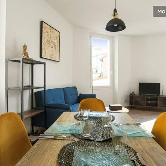 Located 10 minutes walk from the beach, close to the train station and the city centre, this flat is perfect if you want to relax and enjoy the southern sun. This beautiful T3 of 70 m² is located on the 2nd floor without lift in a quiet and pedestrian street and is composed of : - a bright and pleasant living room with sofa bed, - a bedroom with double bed, - a second living room with sofa bed, - an open kitchen equipped with coffee machine, toaster, combined oven/microwave, hotplates, fridge, dishwasher, - a bathroom with bathtub, - a bathr...