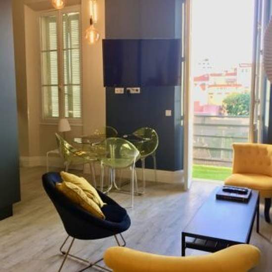 Loft-style flat with exposed beams and double height ceiling. 2nd floor without lift, 54m2 plus a south-west facing terrace of about 5-6m2. 2 fully equipped bedrooms with storage cupboards, beds, duvets, sheets etc. 2 bathrooms with shower and WC in each. Large living room with open kitchen Fully equipped (oven, microwave, dishwasher, washing machine, induction hob...). Living room with large sofa bed, TV with Orange - Fully air-conditioned with reversible air conditioning. No private parking but the parking in the street is free. Very brigh...