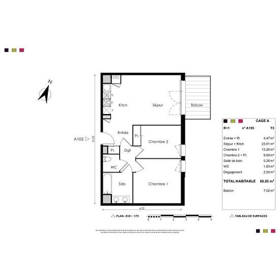 Proche des transports en commun, du centre-ville et des commerces, agréable T3 composé d'une entrée, d'un séjour avec cuisine équipée (évier inox, plaque 4 feux, hotte, meubles hauts et bas), de deux chambres dont une avec placard, d'une salle de bain aménagée et d'un WC séparé, d'un balcon de 7.02m². Il bénéficie de deux places de parking en sous-sol .