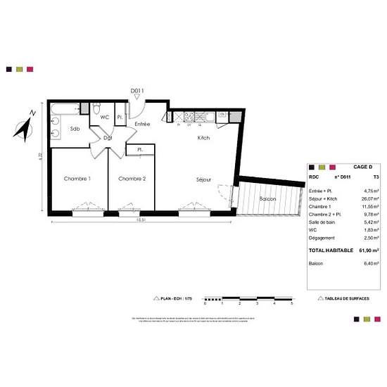Idéalement placé,agréable T3 situé au rez-de-chaussée. Il se compose d'une entrée, d'une pièce à vivre avec son espace cuisine équipé (évier inox, plaque 4 feux, hotte, meubles hauts et bas), de deux chambres dont une avec placard, d'une salle de bain salle aménagée et d'un coin WC séparé. Les plus de logement : un balcon de 6.40 m² , deux places de parking en sous-sol.