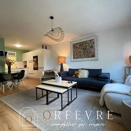 Discover this fully furnished, very modern 3-room apartment, with a covered terrace and a garage box with an underground parking space in the Résidence l'Étoile, Place Charles de Gaulle. It comprises a fitted and equipped kitchen opening onto a bright living room. The kitchen includes an integrated dishwasher, a refrigerator with freezer, an oven, an extractor hood and a cooktop. The apartment offers high-quality finishes, a functional layout and contemporary furniture, ideal for immediate comfort. South-east exposure. Charles-de-Gaulle tram...