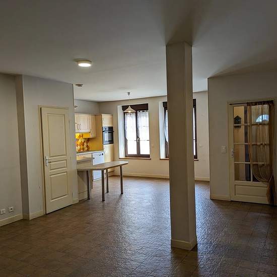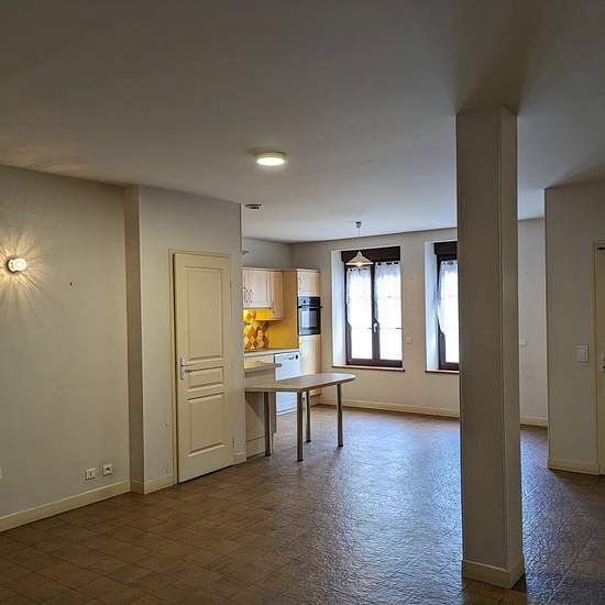 CHALUS APARTEMENT T3 A LOUER CHALUS A LOUER appartement de plain pied, centre ville, comprenant une cuisine ouverte sur séjour, salle d'eau, WC, deux chambres, dépendance, jardin, double vitrage, chauffage électrique. Disponible immédiatement