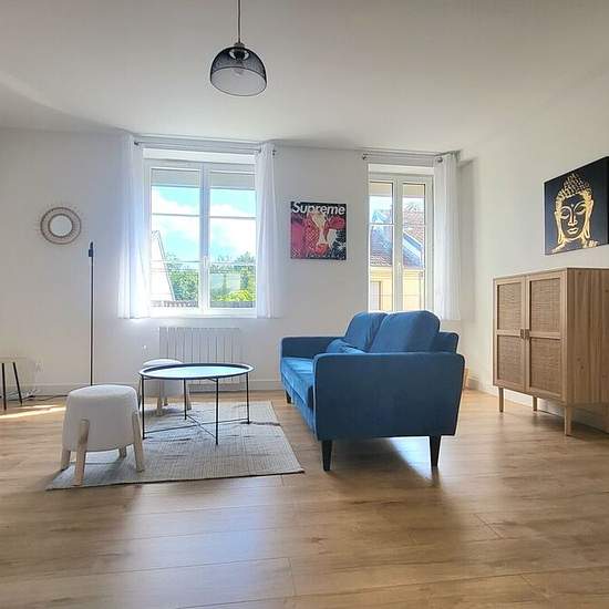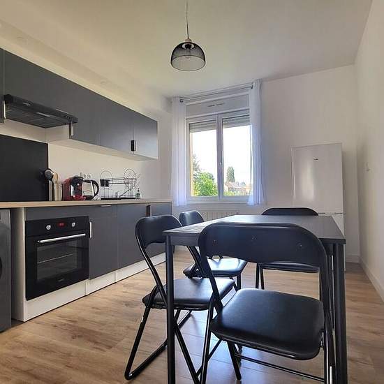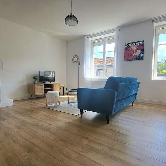 Iad France - Alicia Routa vous propose : * À LOUER * Je vous propose de découvrir ce magnifique duplex entièrement rénové et meublé de 57 m² environ, situé au 1er étage d'un immeuble de 5 appartements. Il se compose comme suit : - 1 grande pièce de vie ouverte sur une cuisine équipée - 1 coin repas - 2 chambres - 1 salle d'eau avec un WC - 1 jardin partagé - Possibilité de louer une cave en supplément Le bien est entièrement équipé (électroménager, vaisselle, linge. ) Proche de toutes les commodités, à moins de 5 minutes à pieds (Hypermarché...