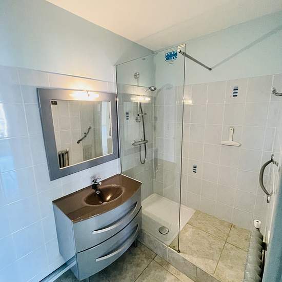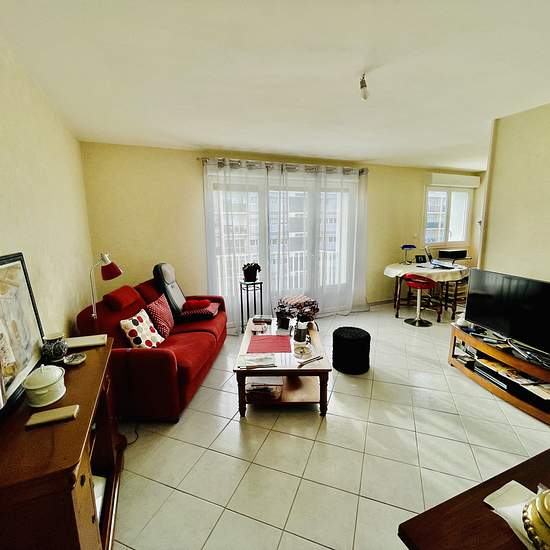 Proche des commodités, appartement de type 3 avec entrée et placards,séjour avec balcon, salon, cuisine aménagée et équipée (plaque induction, hotte et four) avec loggia, deux chambres, salle d'eau, WC. Cave. Garage. Chauffage collectif