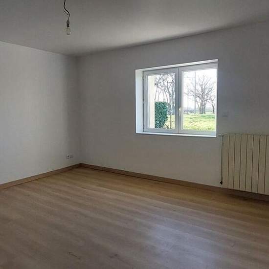 Chaveyriat - route de vonnas a 16 minutes de chatillon sur chalaronne maison avec sa cour et terrain non clôturés à la campagne au calme, type 3 traversant et spacieux. Comprenant un vaste séjour avec son espace cuisine meublée et équipée d'une plaque de cuisson et hotte, salle de bains / wc, dégagement avec placard, 2 chambres, cellier. Vous disposez de nombreuses dépendances, d'un abri véhicules, une cave. Accès internet fibre. Chaudière pompe à chaleur individuel, cumulus pour l'eau chaude. Loyer 830 € + 20 € charges entretien pompe à cha...