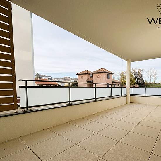 Nous vous proposons à la location un appartement de type T3, d'une superficie de 57,95 m², situé au premier étage, dans le secteur nord de Clermont-Ferrand. Ce bien est entièrement neuf, construit en 2025, et se distingue par son état général excellent et son standing élevé avec une belle luminosité. L'intérieur de l'appartement se compose de deux chambres, d'une salle de bain et d'un WC. La cuisine est aménagée et équipée (Plaques vitro, four, hotte, meubles hauts et bas), offrant un espace fonctionnel et moderne, le tout ouvrant sur un bal...