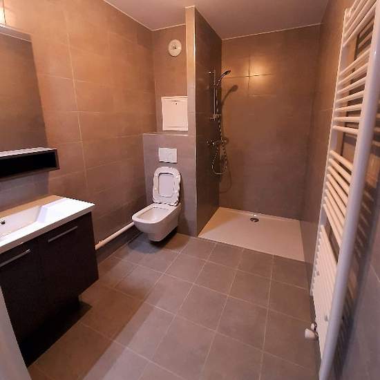A 2 pas de la Ligne 14, au 3ème étage d'un immeuble neuf, superbe trois pièces sur cour comprenant: cuisine ouverte sur séjour, 2 chambres, salle d'eau avec WC. Terrasse de 12m². Emplacement parking en sous sol.