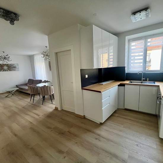Beautiful furnished F3 (three-room) apartment, renovated with great taste. Located on the first floor of a small building in the center of Colmar, you enter into a lovely living area with an open fitted kitchen, two bedrooms with storage, a shower room and a separate toilet. A cellar is included with the apartment. Individual gas heating.