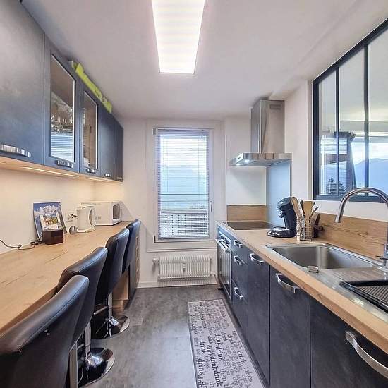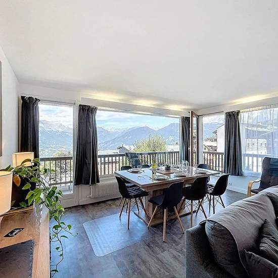 Appartement d’une superficie de 68 m², situé au 2ème étage d'une copropriété au centre du village. Il est composé : d’une entrée, d'une cuisine séparée et entièrement équipée (four, Senseo, cafetière, bouilloire, micro-onde, plancha, appareille raclette/fondu, frigo congèle, lave vaisselle) donnant sur un grand balcon d’angle exposé Est Ouest, d'une très belle pièce de vie avec balcon et un espace nuit composé ; d'une chambre avec un lit de 140 et d'une chambre dortoir avec 5 lits simples (90) d'une salle de douche et d'un WC. Loué avec un c...