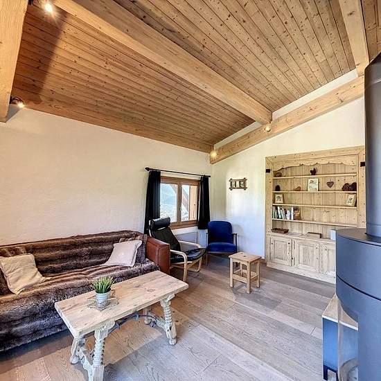 Idéalement situé en plein cœur du village de Combloux, appartement au 2° étage, d'une superficie de 88 m² (loi carrez 55m²) comprenant : entrée, placard, un beau et lumineux salon donnant sur un balcon-terrasse Sud-Ouest, une salle à manger, une cuisine tout équipée avec Lave-Linge, accès sur un balcon-terrasse Nord-Ouest, un WC indépendant, une chambre double avec un lit en 160x200 avec accès également au balcon, une salle de douche/bain. Au niveau supérieur