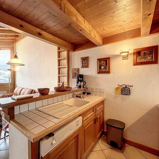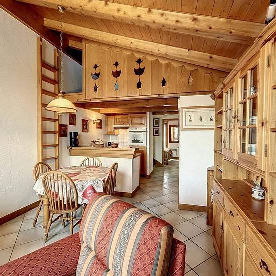 Résidence de type chalet, située à proximité du domaine skiable, face à la chaine du Mont Blanc et 4.5kms du centre du village. Bel appartement d'environ 50 m² situé au 2ème étage d'une résidence proche du départ du domaine skiable. Exposition Est avec belle vue Mont Blanc. Il se compose d'une entrée avec placard, deux chambres avec lit de 140 dont une avec accès balcon, une salle de bain, un wc séparé, une mezzanine avec un escalier escamotable avec un lit 140, une cuisine équipée, ouverte sur une pièce de vie donnant sur un balcon terrasse...