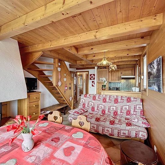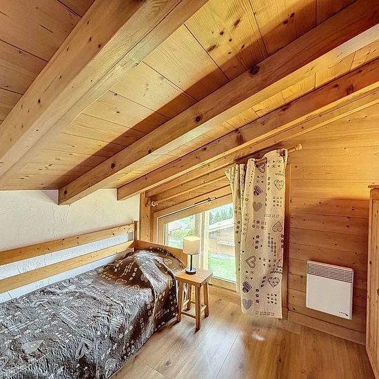 Dans une résidence idéalement situé à proximité du domaine skiable Les Portes du Mont Blanc, joli appartement d'environ 42 m² environ au 1er étage. Avec une très belle vue sur la chaine du Mont Blanc, il se compose : d'une entrée, une salle de bain avec lave-linge, un wc, une pièce de vie avec cuisine ouverte équipée (plaque vitrocéramique, four, frigo, micro ondes, lave-vaisselle, bouilloire, grille-pain, cafetière), un coin repas, un coin salon avec accès sur une terrasse, une chambre avec un lit en 140, une chambre sous toiture avec un li...
