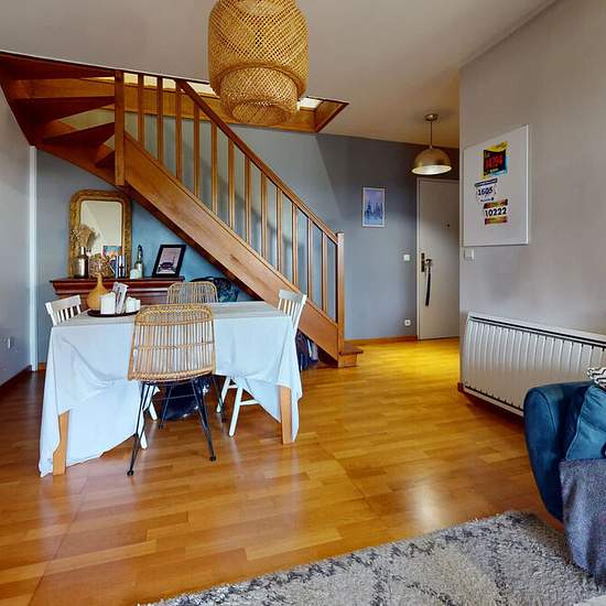 Venez découvrir ce bel appartement en duplex proche de la gare et d'autres commodités. Ce duplex au coeur d'un quartier récent vous offre de belles prestations. Au RDC, vous retrouverez un bel espace de vie avec un séjour et une cuisine ouverte équipée le tout laissant accès sur un grand balcon donnant sur une rue calme. Il y'a également un WC. A l'étage, l'espace nuit avec deux belles chambres équipées de rangements et dont l'une bénéficie d'un balcon. Puis sur ce même palier une salle de bain avec baignoire. Pour compléter ce bien vous aur...