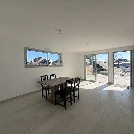Sur la commune de CREVIN, à proximité des écoles et commerces et à 10 min de la Gare du Bourg des Comptes. Au 1er et dernier étage d'une petite copropriété neuve, un appartement MEUBLÉ (au minimum) de type 3 comprenant : une pièce de vie avec cuisine aménagée et équipée donnant accès à une terrasse couverte de 12m², un dégagement desservant 2 chambres, une salle d'eau avec sèche serviette et WC indépendant. Logement soumis à la GLI (Garantie Loyer Impayé) Disponible immédiatement. Loyer charges comprises : 830€ CC (pas de charges). DPE : 68 ...