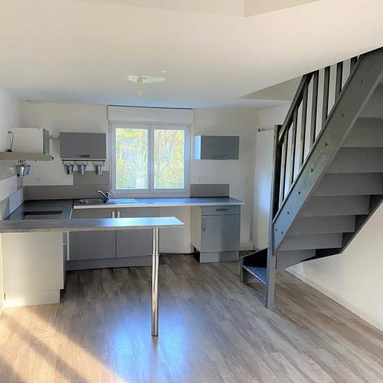 Bel appartement F3 Bis duplex. Dans petit immeuble au calme et à 2 min. accès A31 - Bel appartement F3 bis en duplex - 9, rue du Général Custines 54670 CUSTINES comprenant : Entrée, cuisine aménagée ouverte sur séjour, dégagement, 2 chambres, 1 bureau, SDB/WC, cave commune, jardinet et terrasse commune, place de parking Chauffage ind gaz - 59,95 m2 - Libre à la location le 26 février 2026 Les informations sur les risques auxquels ce bien est exposé sont disponibles sur le site Géorisques :