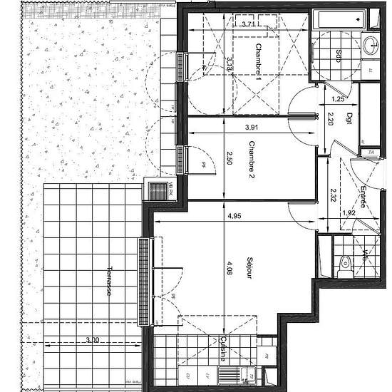 EAUBONNE, Au 8 Allée Lucie Aubrac, dans un immeuble récent, en rez-de-jardin, bel appartement de 3 pièces de 60m2, comprenant une entrée avec placard, un séjour avec cuisine US aménagée et équipée plaques/hotte électriques, deux chambres, une salle de bains, et un WC séparé. Jardin de 50m2 exposé Sud Est. Parking en sous-sol.