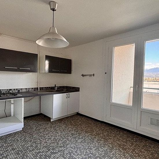 Located on the 5th floor with elevator, this cross-through T3 apartment offers a pleasant and bright living environment thanks to its dual exposure and two balconies. The entrance has a storage closet and leads to a fully equipped kitchen on the left, extended by a balcony with an unobstructed view of Belledonne. On the right, the living room also has access to a second balcony, with no overlooking neighbors, offering a beautiful view of the Chartreuse. The sleeping area, well separated, consists of a first bedroom, a separate toilet, and a ...