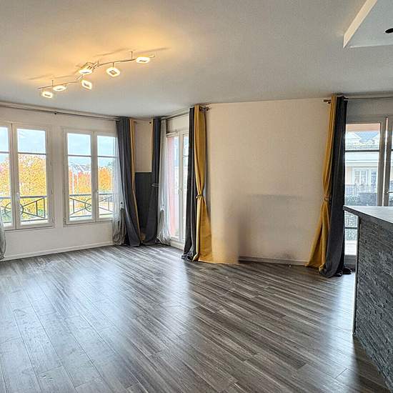 Dans une résidence récente, au calme et à 10 minutes à pied de la gare RER E. Appartement 3 pièces, comprenant entrée, belle pièce de vie avec cuisine américaine aménagée, grand balcon-loggia, coin nuit avec deux chambres, salle de bains et des WC. Une cave et une place de stationnement en sous-sol complète le bien. Possibilité d'une place de stationnement supplémentaire extérieure.