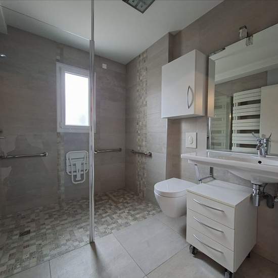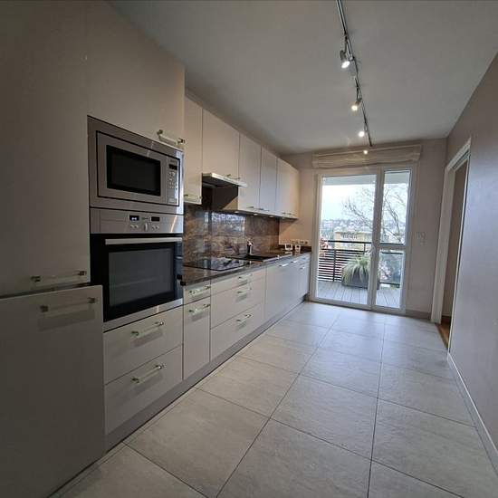 In a high-end, quiet and secure residence, we offer for rent this spacious and bright four-room apartment of approximately 100 m² with a terrace, garage, cellar and private parking space. Located on the ground floor, it includes a living room with terrace access, a separate fully fitted and equipped kitchen (hob, extractor hood, oven, fridge/freezer, microwave, dishwasher), a bedroom with a private shower room, and two other bedrooms, one of which has ample storage. You will also benefit from a second shower room with WC. This accommodati...