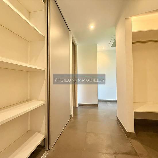 Located in a sought-after residential neighborhood and in absolute tranquility, this magnificent three-room duplex apartment of 92 m² offers an exceptional living environment between sea and mountains, close to the medieval village and the Château d'Éze. The garden level comprises two bedrooms with custom-built wardrobes opening onto a terrace and a garden, two shower rooms with WC, and a hallway with extensive custom storage. Upstairs, a spacious 44 m² living room is flooded with light thanks to its full-height windows, together with an ope...
