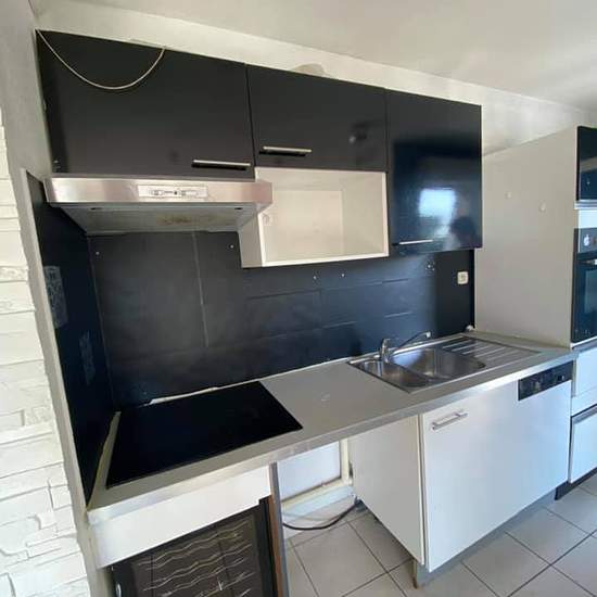 FOR RENT / available: T3 apartment on the 1st and top floor of the building in Frouzins, 58 m² - balcony. In a small secure residence. €680/month excluding charges. - 2 bedrooms with built-in wardrobes/dressing - 1 bathroom with bathtub, vanity with one sink, electric towel warmer - separate WC - entrance hall with built-in wardrobe/dressing - living room with fitted kitchen, 30 m² (induction hob / oven / hood / wine cooler / dishwasher) - 1 storage room 2 m² - 2 parking spaces - no elevator or pool - very bright / south-facing - close to bu...
