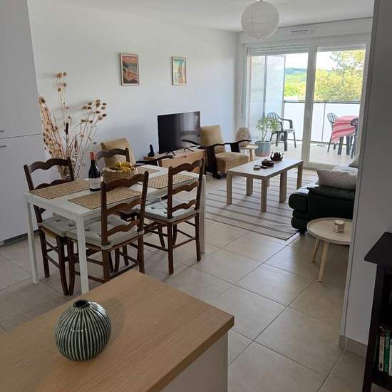 Découvrez ce magnifique appartement Type 3 meublé situé au 2ème étage, d'une surface habitable de 60,86 m², construit en 2022, offrant tout le confort moderne dans un cadre agréable. Ce bien se compose de : - Une entrée avec placard intégré, - Un séjour lumineux avec cuisine ouverte, donnant accès à un balcon idéal pour vos moments de détente, - Deux chambres confortables, - Une salle de bain moderne, - Un WC indépendant. Les plus : Garage inclus, Chauffage et eau chaude individuels par chaudière à gaz, Disponible immédiatement ! Un logement...