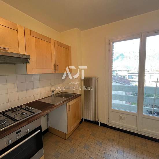 GRENOBLE - Grand T3 à louer avec cave - à proximité de tous les commerces (superette, boulangerie), du tram A et de l'entrée sur l'autoroute. Cet appartement entièrement repeint, situé au 3ème étage avec ascenseur propose une belle entrée avec placard desservant chaque pièce, un grand séjour lumineux avec accès au balcon et vue sur la Bastille, une cuisine équipée (hotte, plaque, four, emplacement Lave vaisselle) avec balcon, 2 chambres, une salle de bain avec emplacement machine à laver, et wc indépendant. Fibre. Chauffage et eaux collectiv...