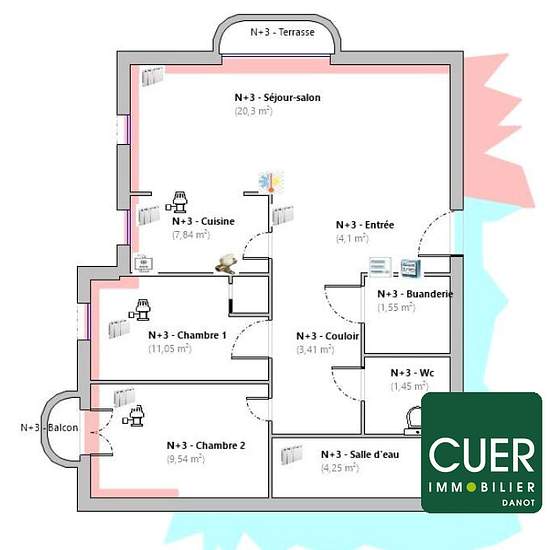Appartement T3 à louer au 3ème et dernier étage avec ascenseur d'un résidence calme de Guilherand-Granges. Le logement se compose d'une entrée, d'un séjour lumineux donnant sur la terrasse et sur la cuisine aménagée, de 2 chambres dont une avec placard intégré, d'une salle d'eau récemment refaite, d'un WC séparé et une buanderie. Un garage et une place de stationnement devant sont loué avec le bien. Logement disponible au 28 Novembre. Bail de courte durée (2ans). Honoraires de 659 € TTC à la charge du locataire comprenant 189 € TTC pour l'ét...