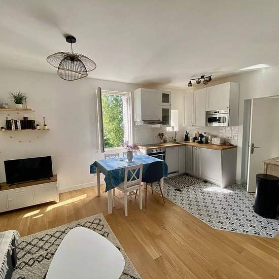 Location de vacances pour 5 personnes d'environ 43 m2 au deuxième étage, comprenant une entrée distribuant une cuisine aménagée et équipée (lave-vaisselle) ouverte sur un salon-séjour (vue mer)(télévision et wifi), une chambre (3 lits superposés 90), une chambre (lit double 140) et une salle de douche avec w-c.